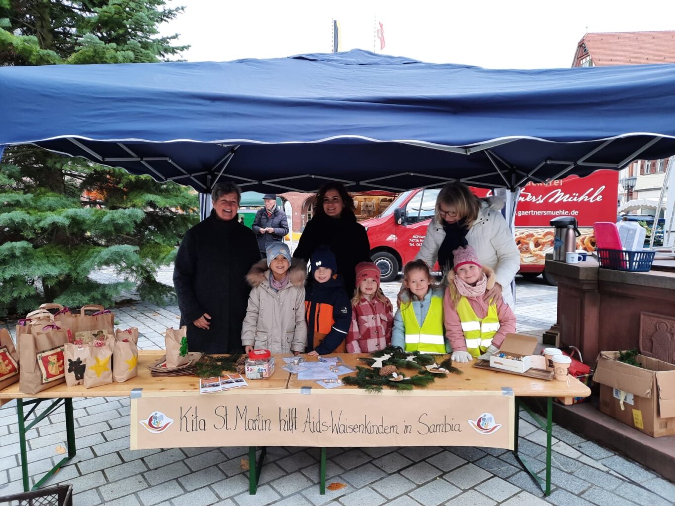 – danke, liebe Kinder! Der St. Martin Kindergarten hat auf dem Marktplatz in Tauberbischofsheim einen Verkaufsstand eingerichtet. Die Kinder um die Leiterinnen Heidi und Maisa