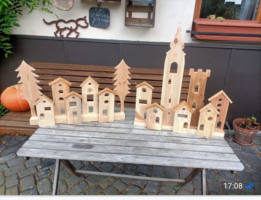 Jedes Jahr im Herbst beginnt er mit der Herstellung von Silhouetten von Städten und Dörfern aus Holzpanelen. Diese werden mit Lichterketten bestückt, die in der Advents- und Weihnachtszeit die Dunkelheit erhellen. Darüber hinaus schnitzt er Engel und Kerzenhalter aus Holz.