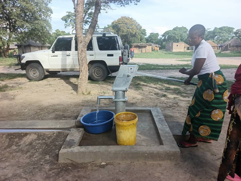 Nicht ausschließlich in der Umgebung von St. Kalemba wurden Brunnen gebohrt. Auch in Solwezi und Ibenga. In Solwezi haben wir auf Bitte des Bischofs Kasonde für zwei Gemeinden Wasserstellen eingerichtet. Beide Brunnen wurden von Familie Haubner gespendet. Die Menschen sind sehr dankbar dafür. Jetzt müssen sie nicht mehr so weit laufen, um ihr tägliches Wasser zu beschaffen.