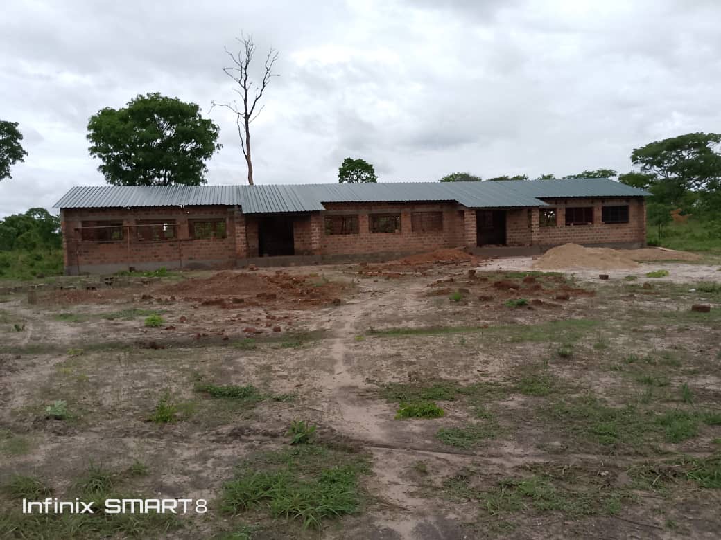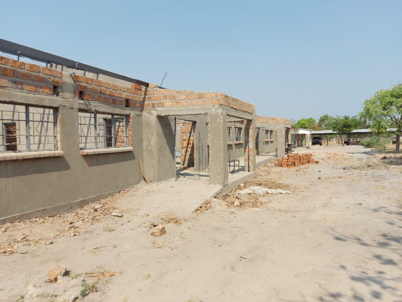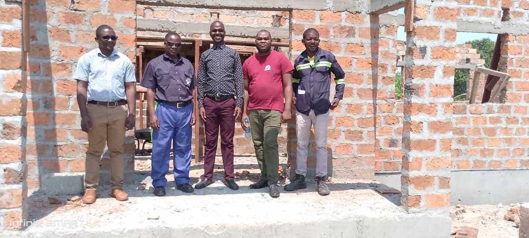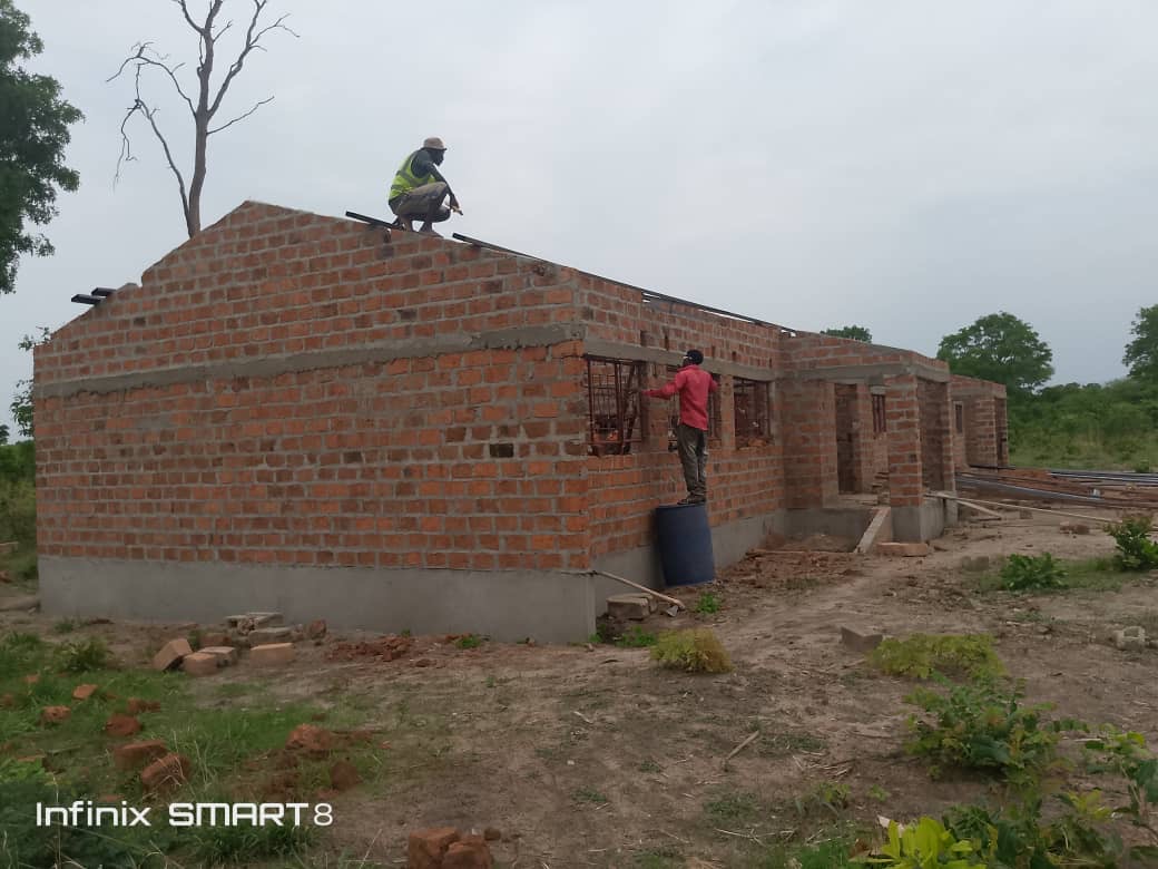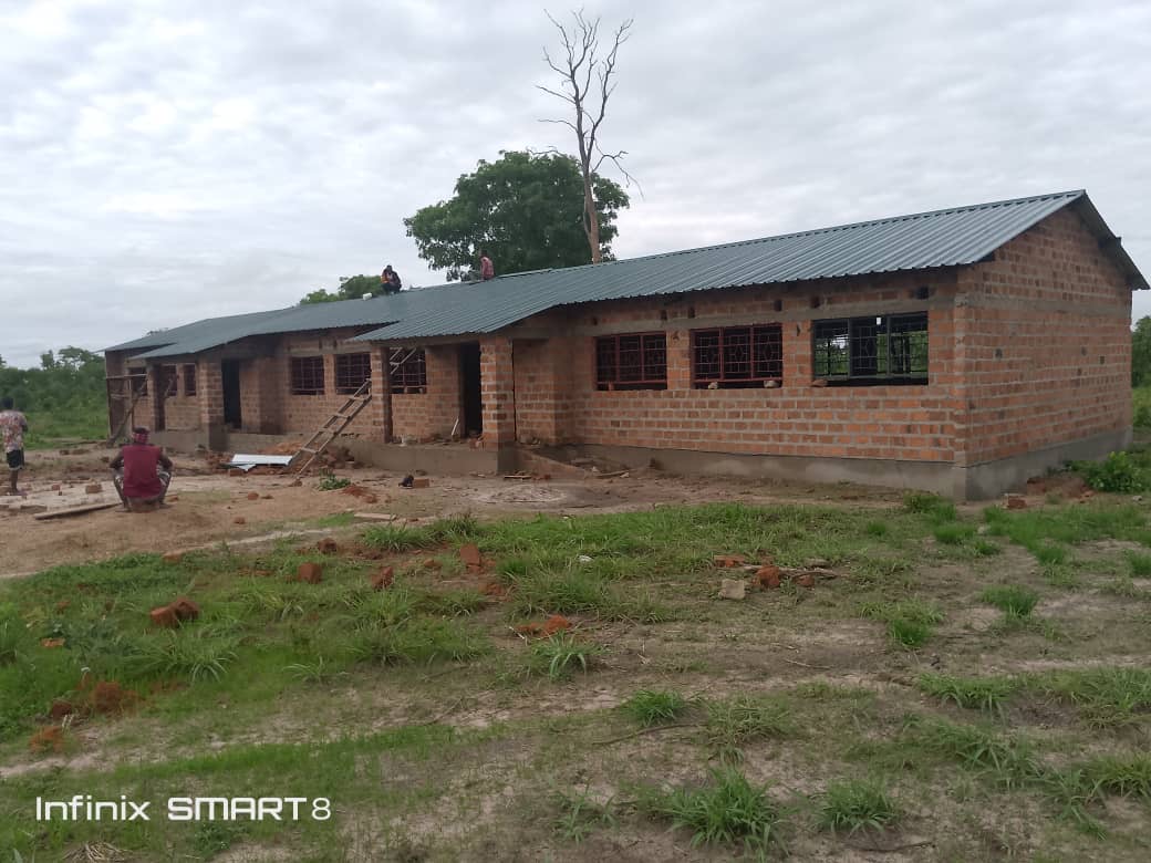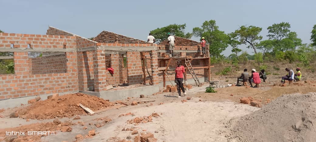 Der Bau des Schulgebäudes geht voran. Inzwischen steht der Rohbau soweit, dass nun das Dach aufgeschlagen werden kann.