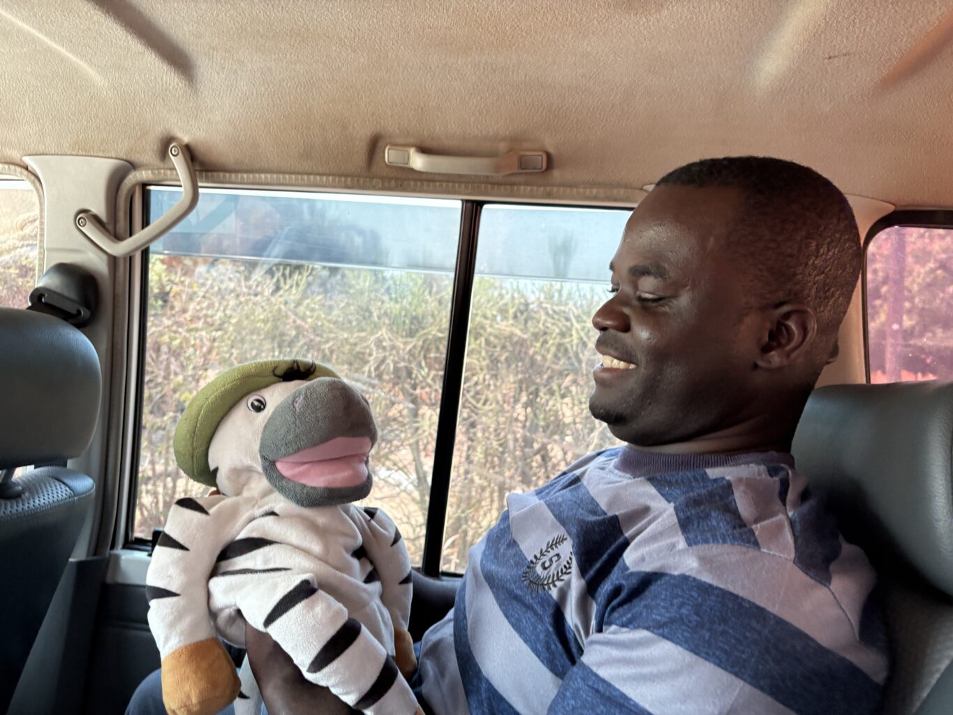 Auf dieser Reise haben wir einen besonderen Begleiter: Zebra Franz. Zebra Franz stammt aus der Klasse 2c der Diesterweg-Schule in Halle. Alle Kinder der Klasse 2c, zusammen mit ihrer Lehrerin Frau Bose, interessieren sich sehr dafür, wie die Kinder in Afrika/Sambia leben, lernen, spielen und ihren Alltag meistern. Es wurde zum Beispiel schon ein kleines Theaterstück aufgeführt, in dem es um Mut der Tiere ging. Nun wurde uns, Anita und Ines, das Zebra Franz anvertraut, mit uns gemeinsam Sambia zu erkunden. Die Anreise war schon spannend. Erst ging es mit dem Zug von Leipzig – Ines kümmerte sich liebevoll – zum Flughafen Frankfurt /Main. Das Flugzeug brachte Anita, Ines und Franz über den Zwischenstopp in Addis Abeba nach Ndola in Sambia. Gut gelaunt wurde die strenge Zoll-Einführungs-Kontrolle überstanden. Father Kankomba wartete am Flughafen schon auf uns. Wir Vier freuen uns schon sehr auf das Land, die Eindrücke und spannende Episoden.