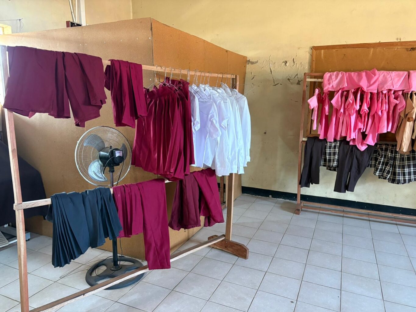 Die Nähwerkstatt entstammt der Nähschule. Hier werden jetzt für all unsere Patenkinder die Schuluniformen und dazugehörige Pullover hergestellt. In der Nähwerkstatt finden 3 Frauen Arbeit. Wir haben uns überzeugt: Es wird gute Qualität an unsere Patenkinder weitergeben. Eine erfreuliche Entwicklung.