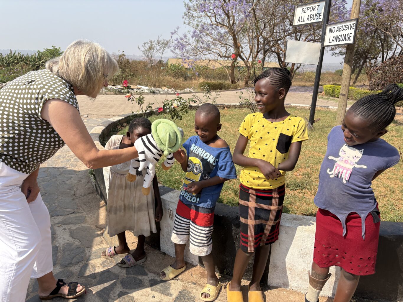 Der Vormittag begann mit einem Besuch von Cheshire Homes. Dort sind unsere handicape Patenkinder untergebracht. Hier gehen die Kinder in die Schule, leben im Internat und lernen ihr Leben zu meistern. Alle Patenkinder kamen freudig auf uns zu. Mit kleinen Spielen und Gesprächen wird immer ein guter Kontakt hergestellt. Selbstverständlich gegrüßte Zebra Franz die Kinder. Wir bezahlen das Schulgeld und wissen: hier sind die Kinder wirklich gut untergebracht.