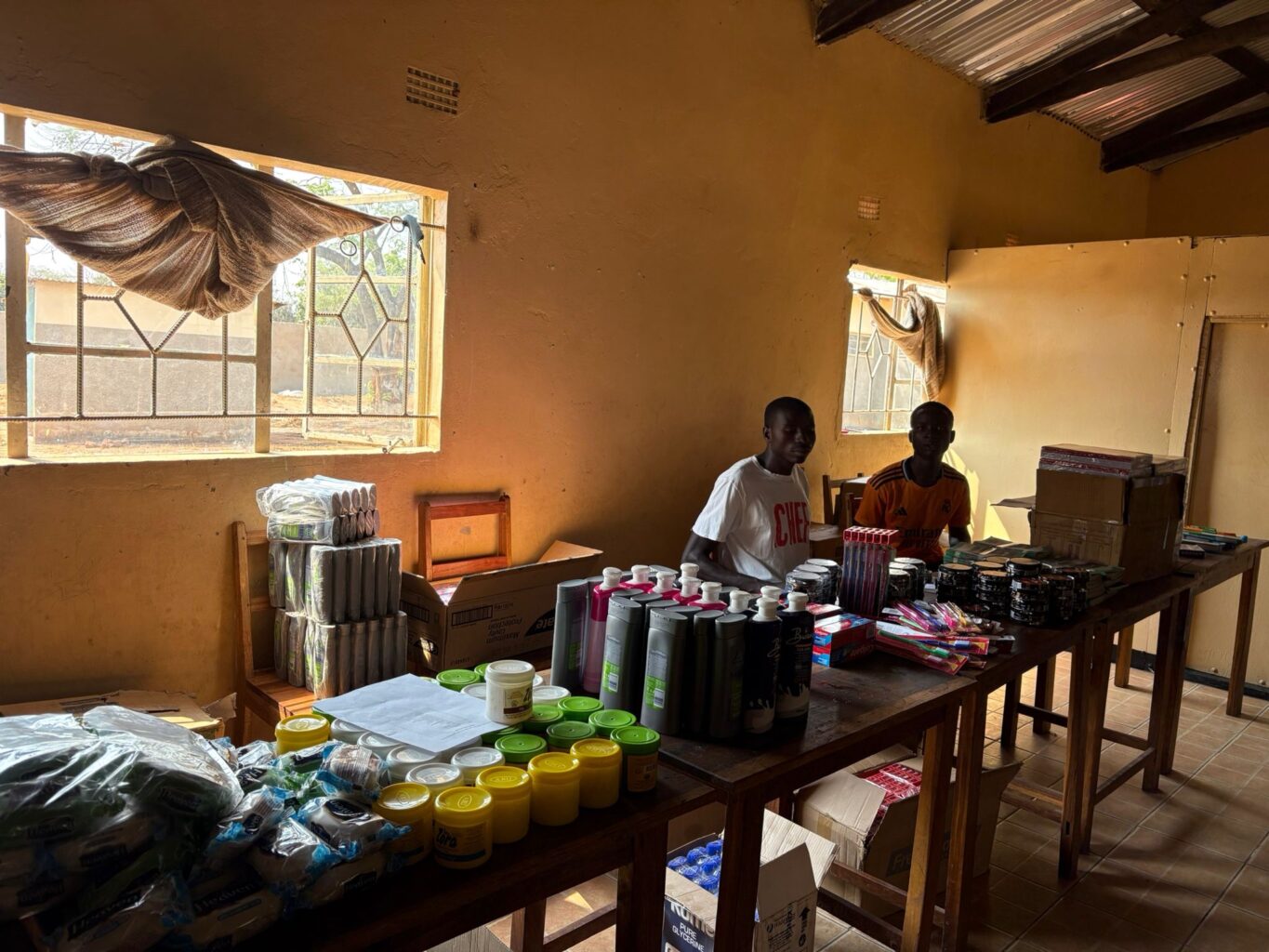 Sichten und verteilen der per Post nach Sambia gesandten Spendengüter. Wer bekommt welche Schuhe, wer welche Kleidung?