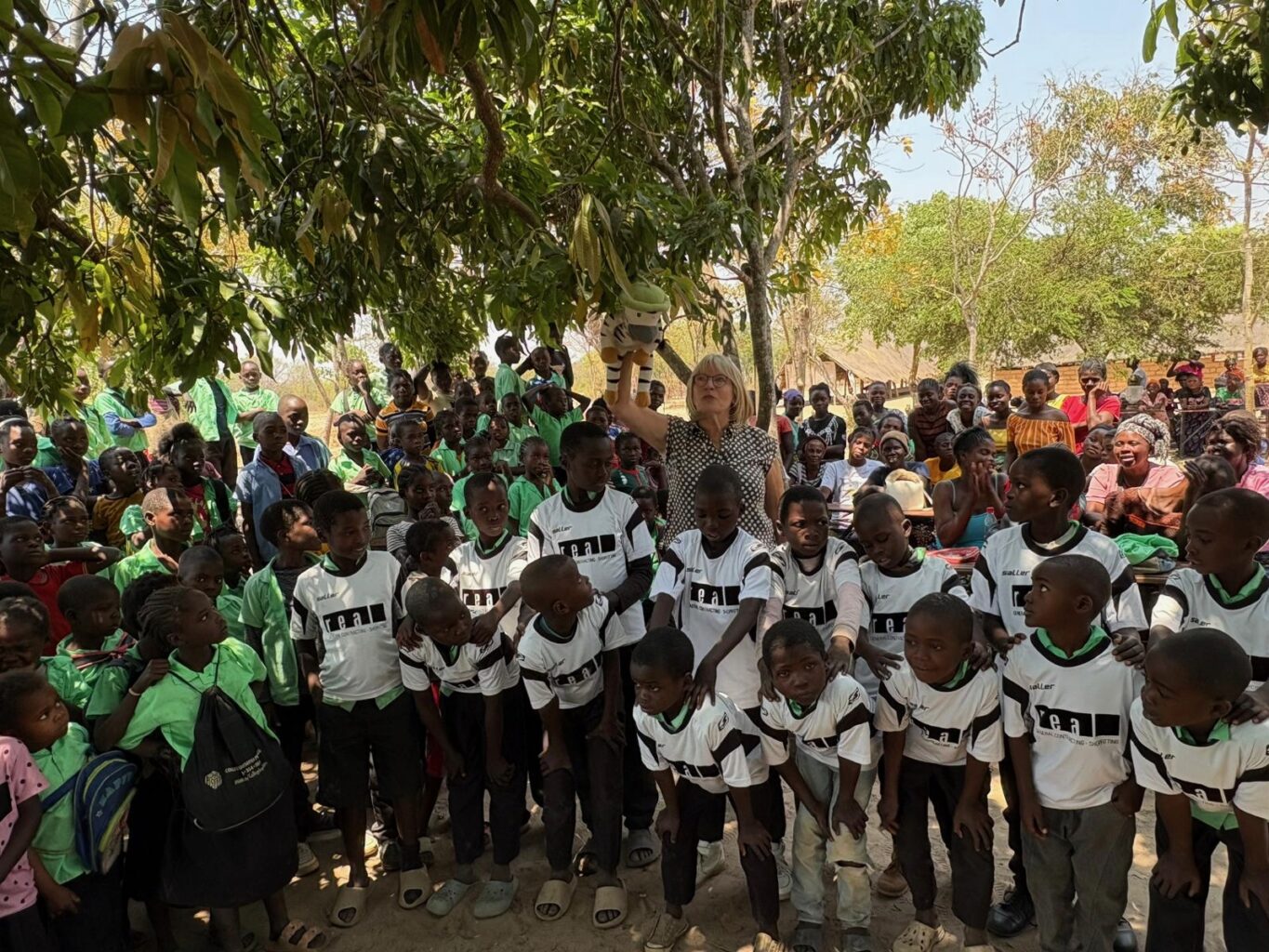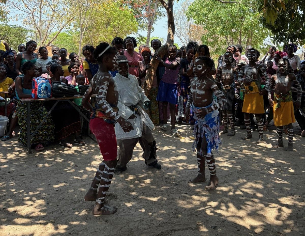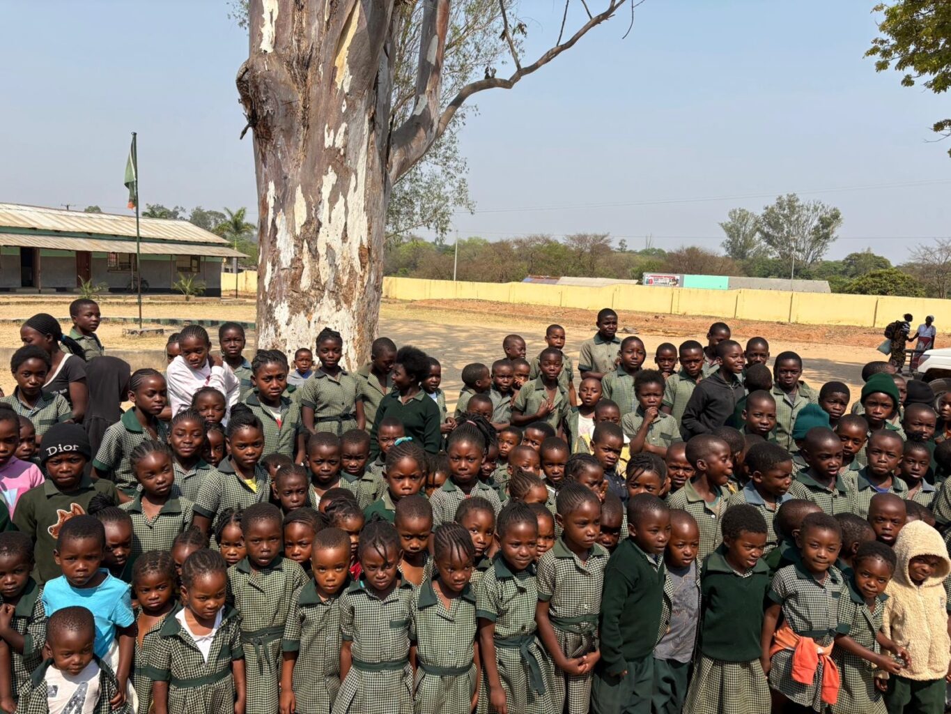 Der Vormittag startete mit einem wahnsinns Programm in der Musa-Schule. Die Musa-Schule liegt abseits der Straße im Buschland. Dort werden die 350 Schüler quasi im Freien unterrichtet. Nachdem ein Ochse auch noch die Tafel zerstört hatte, war die Not groß. Unser Verein, unterstützt von zwei Herzensmenschen, hilft – nachdem wir den Zustand beim letzten Besuch in Sambia gesehen hatten – beim Bau eines neuen Schulgebäudes. Diese Woche kommt das Dach darauf. Ein Grund zu feiern. Mit einem herzlichen Empfang durch die Dorfgemeinschaft, vielen Dankesreden, traditionellen Tänzen und Geschenkeübergaben dankten die Menschen für die Unterstützung ihres Dorfes. Ein sehr bewegender emotionaler Moment.